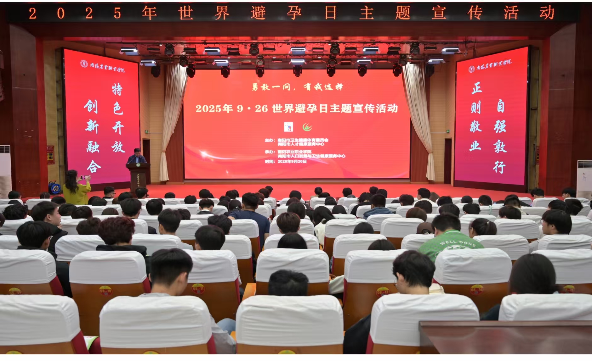 2025年9月26日上午,由南阳市卫生健康体育委员会、南阳市人才健康服务中心(南阳市计划生育协会)主办,南阳农业职业学院、南阳市人口发展与卫生健康服务中心承办的“勇敢一问 有我选择”世界避孕日主题宣传活动在南阳农业职业学院顺利举行,市卫健体委相关领导出席活动并致辞,农业职业学院300余名师生代表积极参与。