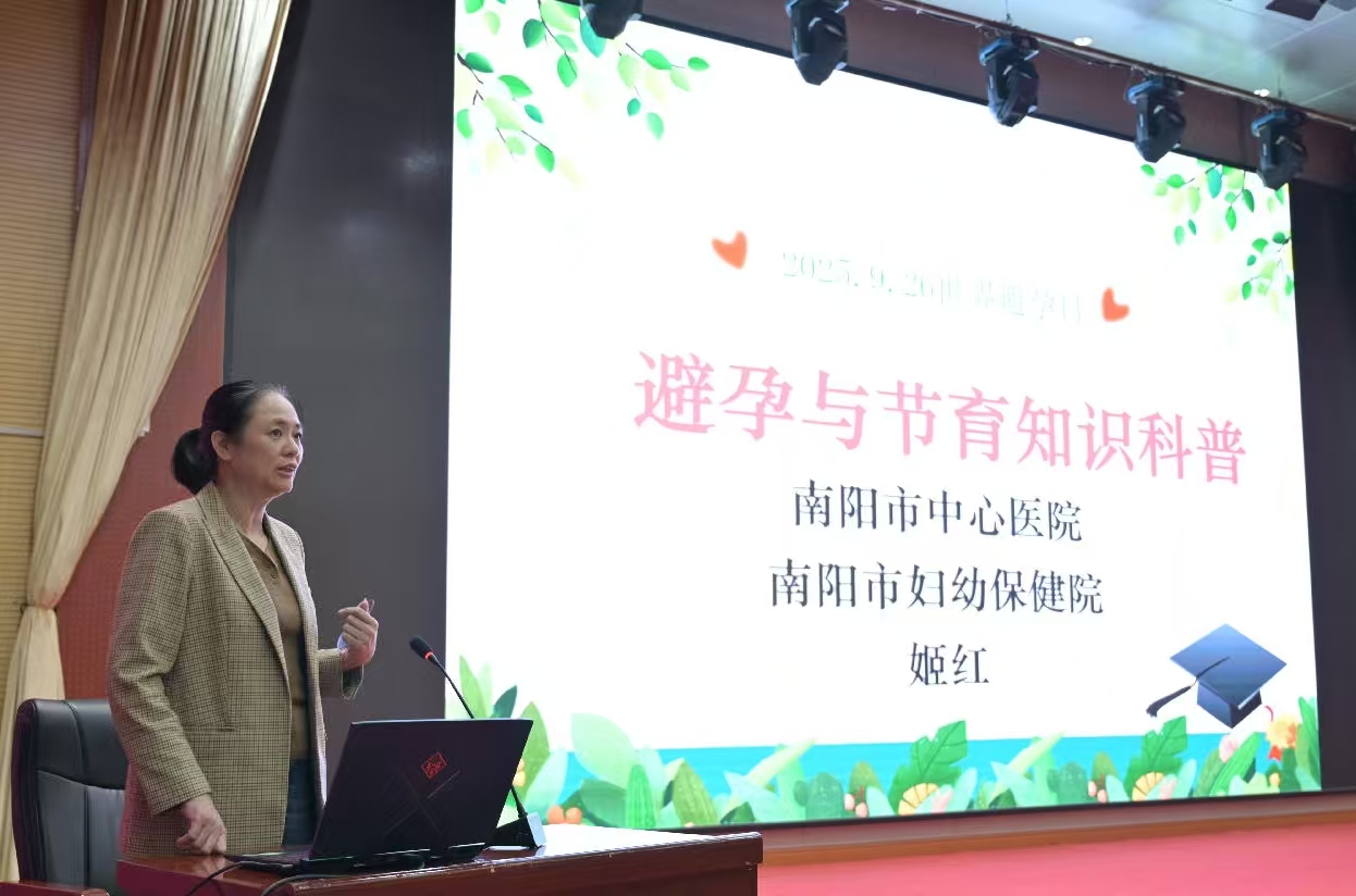 形式多样 增强科普效果与情感共鸣。活动在庄重温馨的氛围中启动。室内主会场活动内容充实、节奏紧凑。暖场阶段通过循环播放主题宣传片,营造良好的参与氛围。南阳市妇幼保健院妇女保健部主任姬红以《避孕与节育知识科普》为题,结合临床实例进行深入浅出的讲解,有效提升学生的认知与防范意识。“青铸未来”项目学生讲师则从同龄人视角出发进行主题演讲,增强代入感与认同感。在互动环节,专家围绕“安全期是否安全”“避孕药使用影响”等常见问题现场答疑,有效澄清认知误区,引导学生树立“知情选择、自主负责”的健康观念。